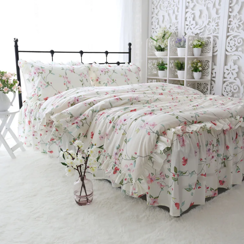 Best Price Princess style bedding set garden print ruffle duvet cover set 100% cotton bed sheet set home texti