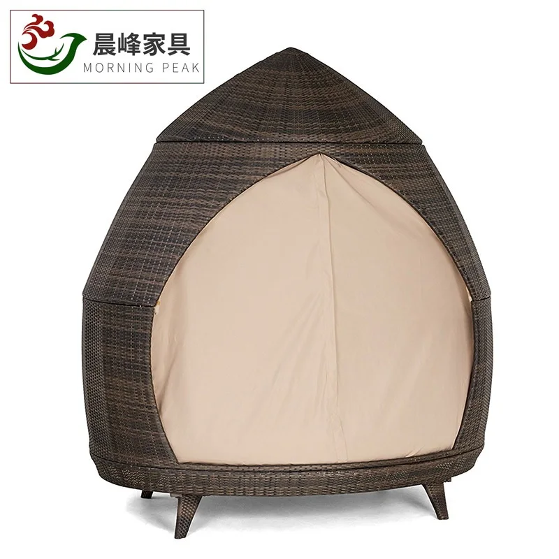 Cheap Hut Inspired Garden Lounge Bed with Canopy / 2.2m High Alfresco Cottage Cabin / Soft Pillows and Cu