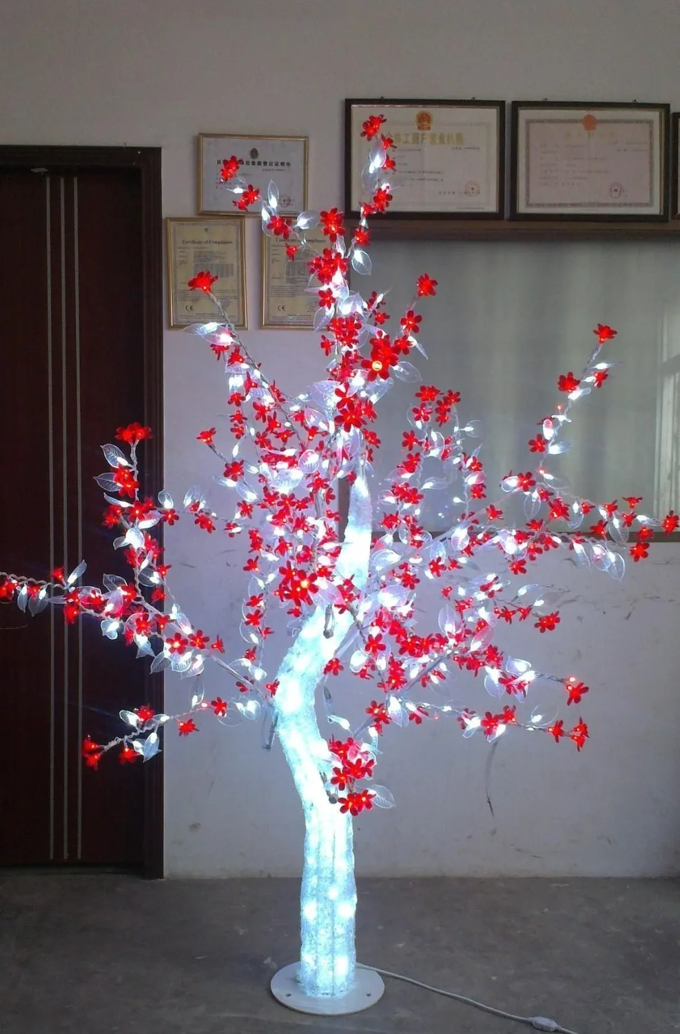 Hot Promo Free ship 5ft 1.5M LED Christmas New year party holiday LED Light Crystal Cherry Blossom Tree red f