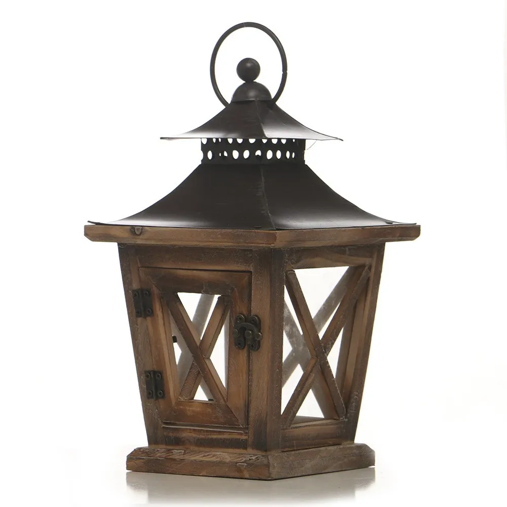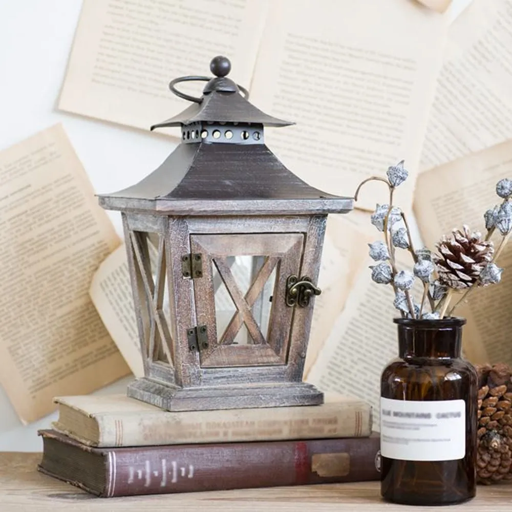 Hot Promo Direct Sales New Retro Wooden Lantern Glass Wind Lamp Candlestick Decorative Art Decoration Garden