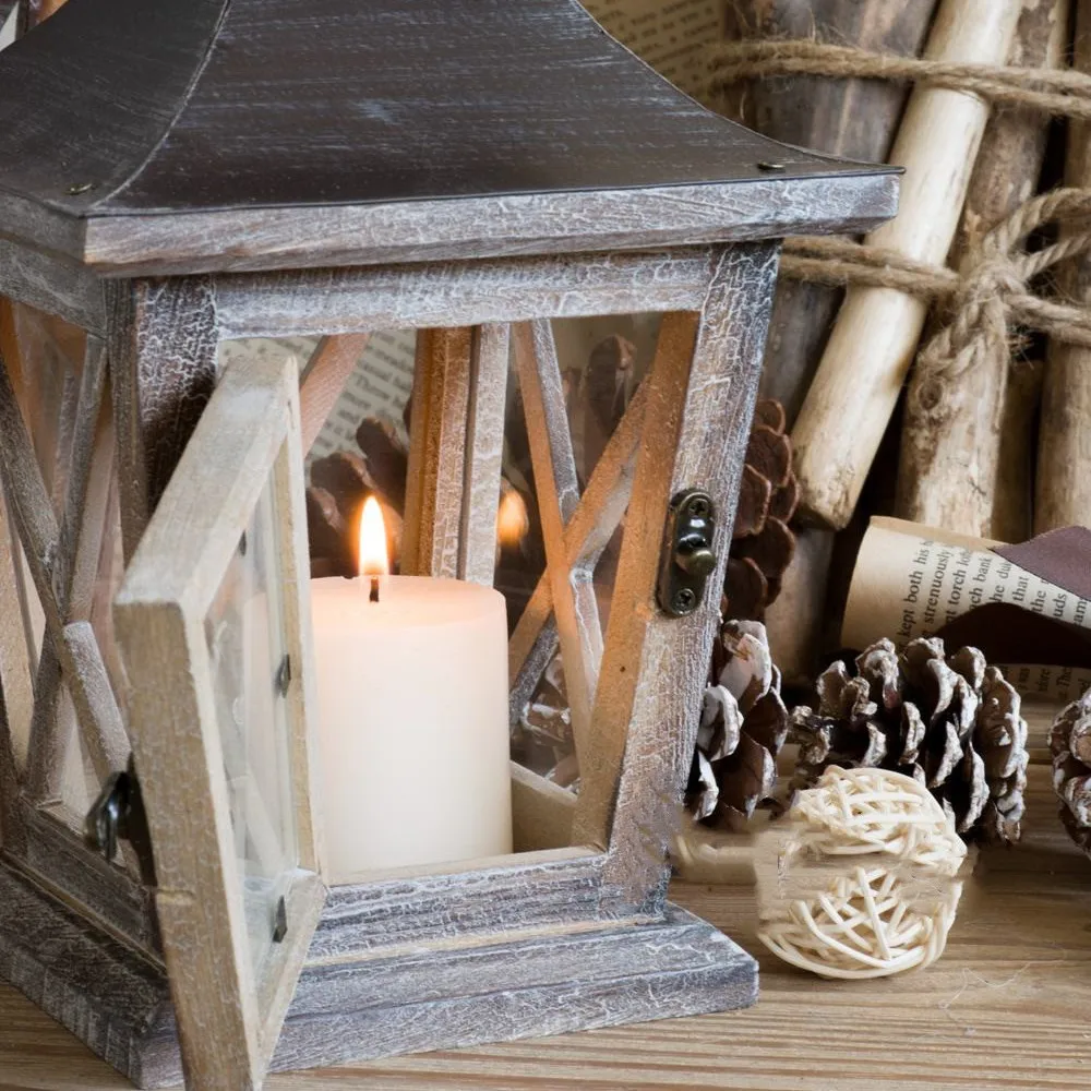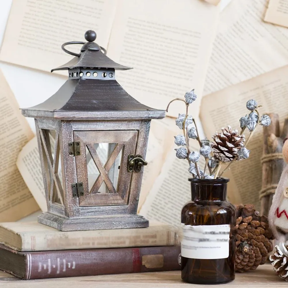 Hot Product Direct Sales New Retro Wooden Lantern Glass Wind Lamp Candlestick Decorative Art Decoration Garden